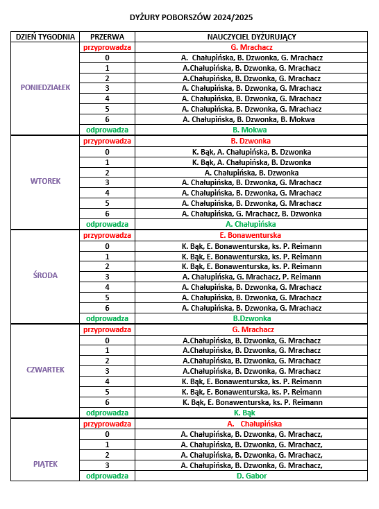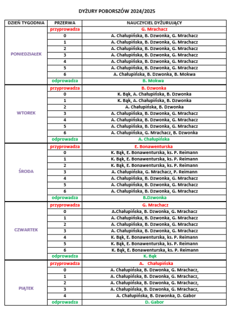 plan dyżurów 2024/2025