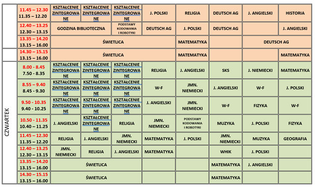 Plan lekcji- zmiana