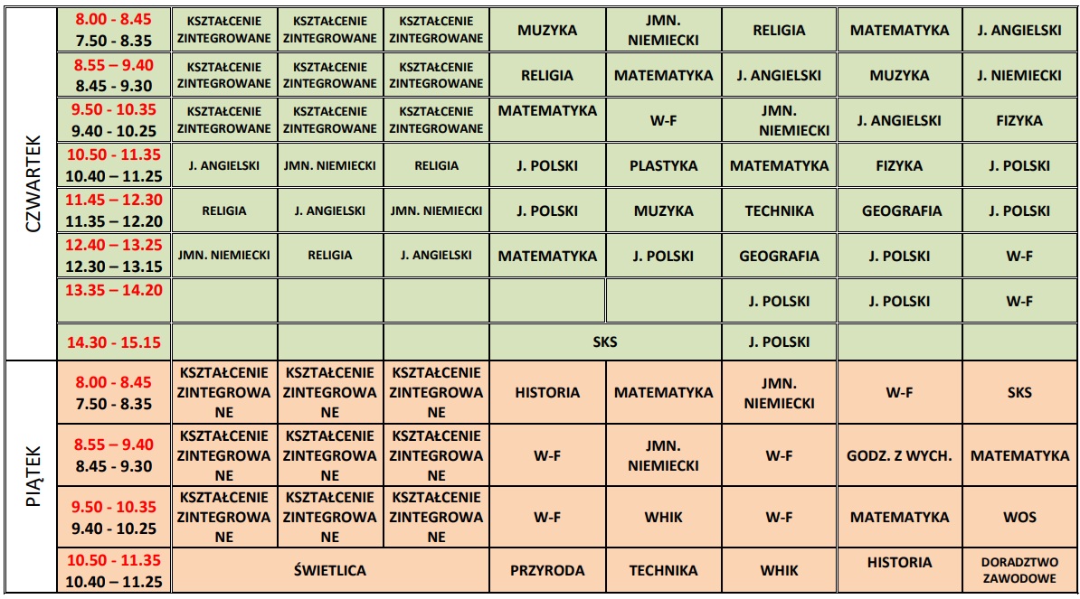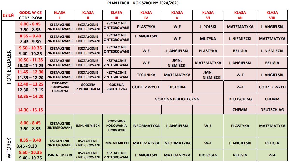Plan lekcji 2024 2025 po zmianie