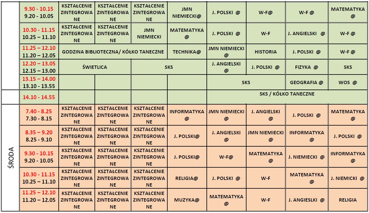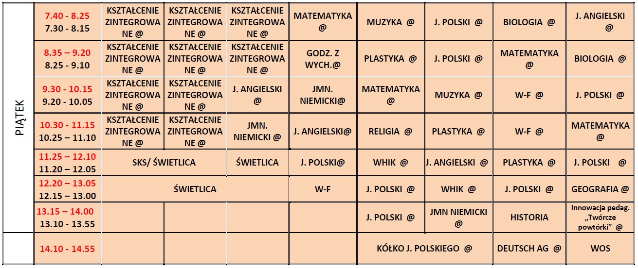 Plan lekcji nauka zdalna