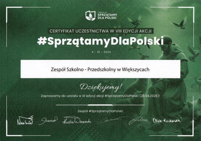Start » Z życia szkoły » Podziękowanie za udział w akcji #SprzątamyDlaPolski » Podziękowanie za udział w akcji Sprzątamy dla Polski